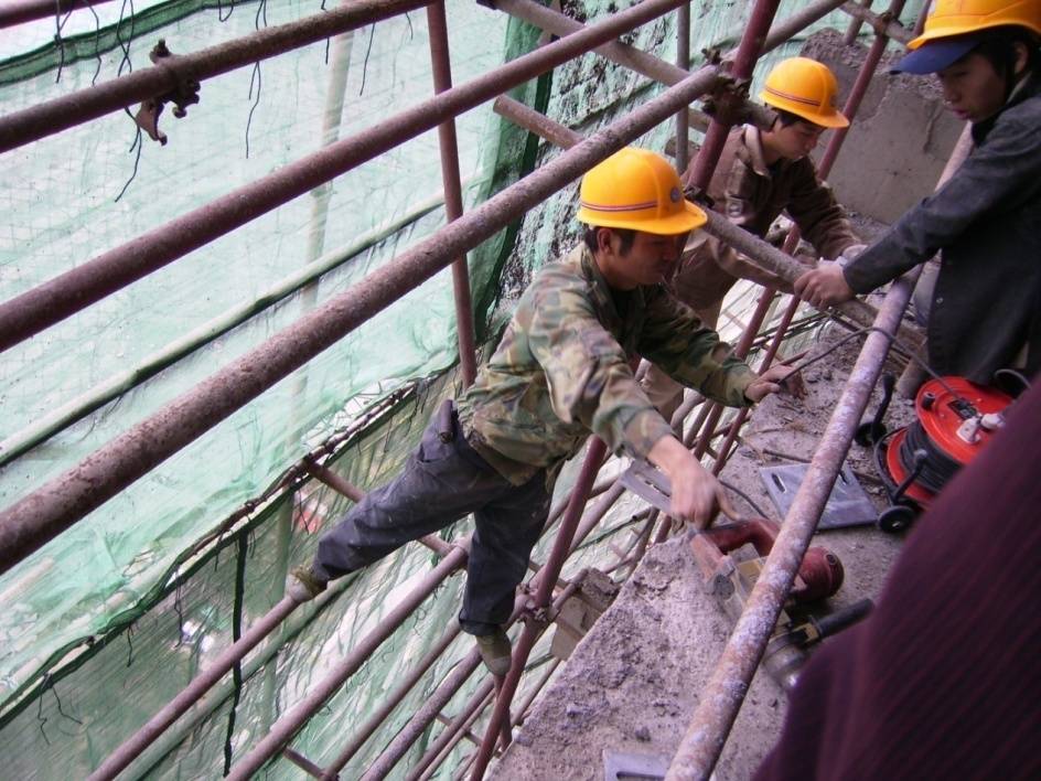 上图为工人安装幕墙的图片,下列关于该图片说法正确的是()。