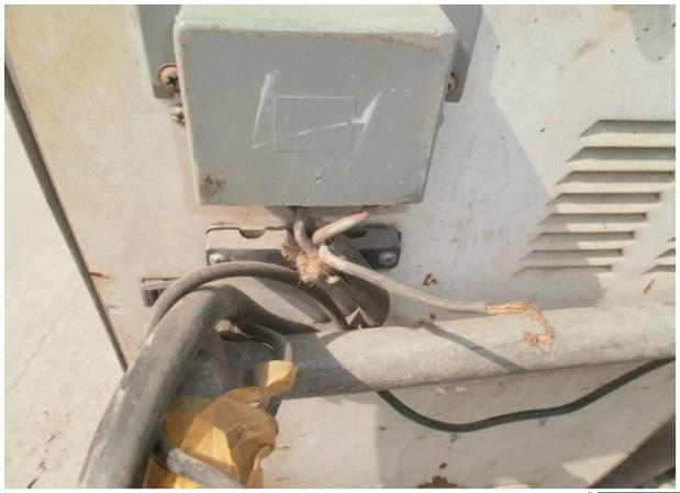 A. 电焊机一次侧接线端子没有防护罩