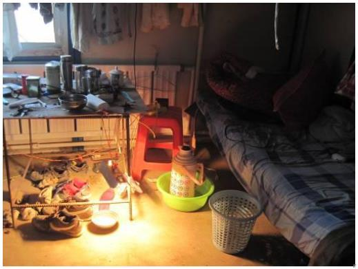 B. 职工宿舍中用于取暖的碘钨灯放置高度不足