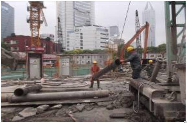 B. 下吊导管的时候,作业人员在空中拖拽导管、
