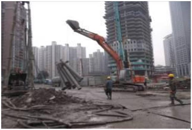 A. 挖机吊导管行走