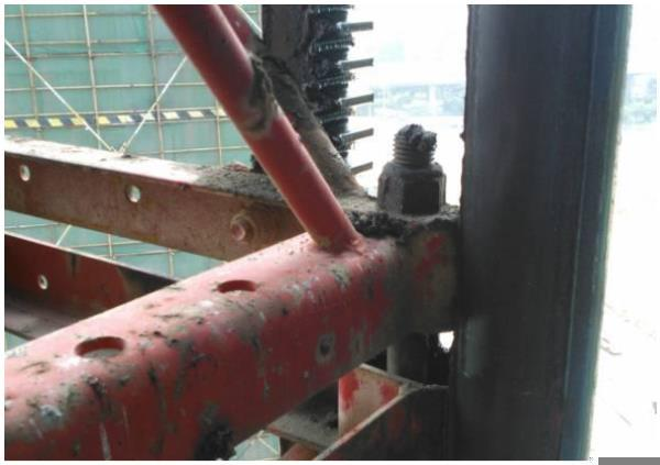 指出施工升降机导轨架连接螺栓存在问题( )。