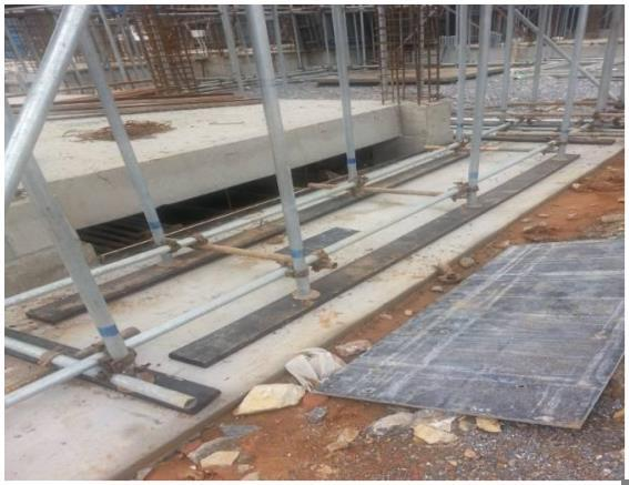 B. 脚手架立杆下方没有设置垫板或底座
