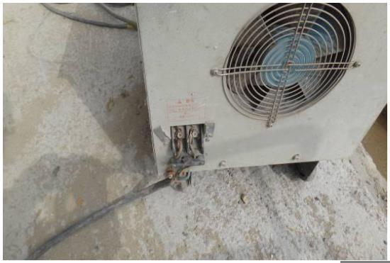 A. 电焊机一次侧接线端子没有防护罩