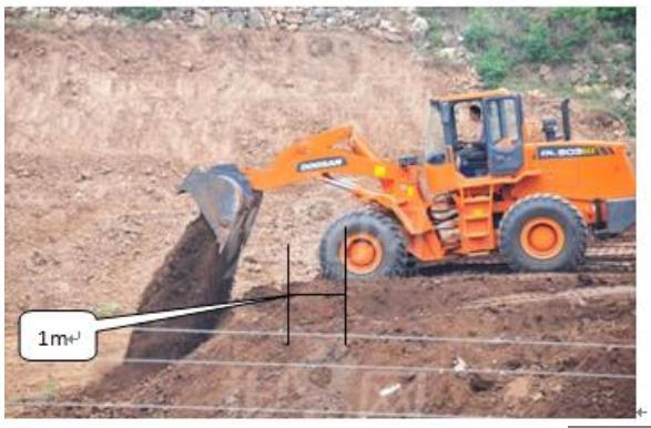 D. 在边坡作业轮胎离边缘距离1m