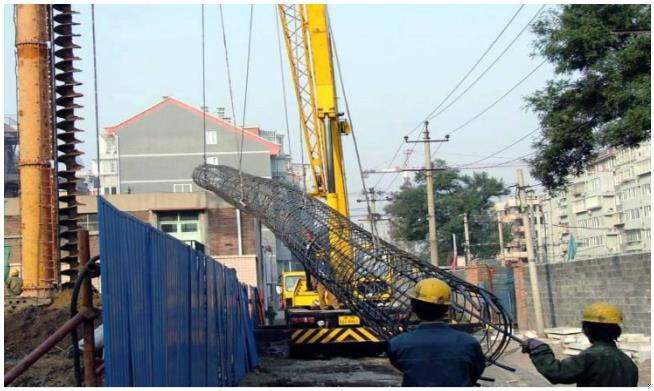 请指出吊放钢筋笼过程中存在的问题: