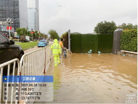 (案例题)2021年7月30日,因突降暴雨,某市地铁车站在建出入口地平面挡水墙被积水冲垮倒塌,地表积水下泄到基坑后通过过道涌入车站。事件发生的原因是地铁排水设施不畅,遇短时强降雨致地面积水严重,冲垮在建出入口挡水设施,如图所示,致使地铁车站进水。