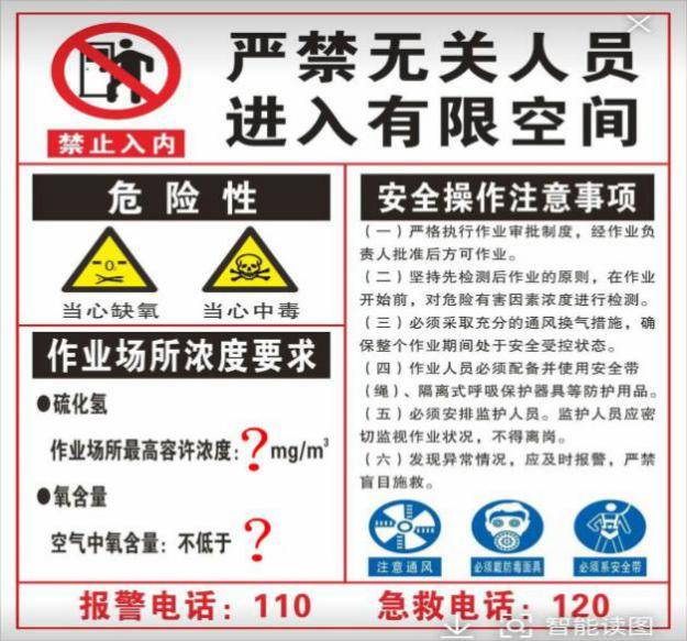 图中有限作业场所内硫化氢浓度、氧气浓度要求分别是多少?( )